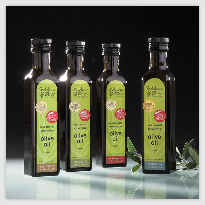 Matakana Olive Co-operative were in need of a fresher logo with a more natural look. The clean, simple labelling was designed to attract the attention of visitors to the Matakana markets. Colour coding ensures that the four varieties are easily distinguished.